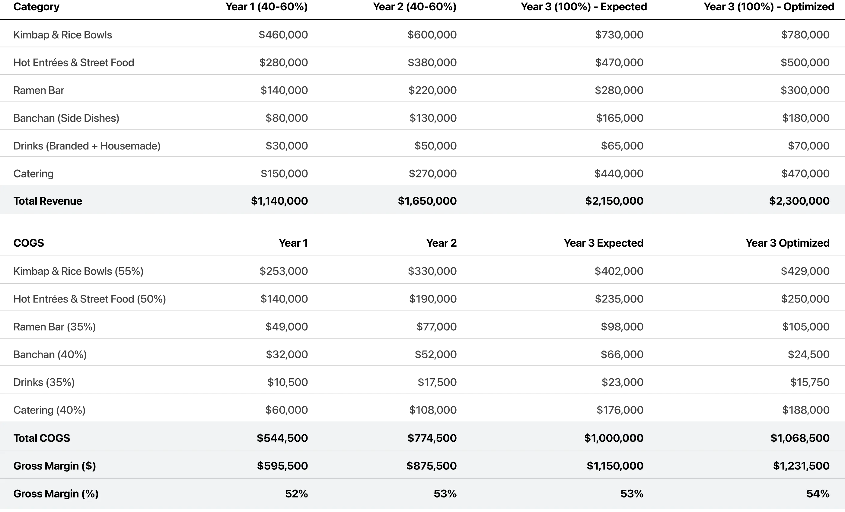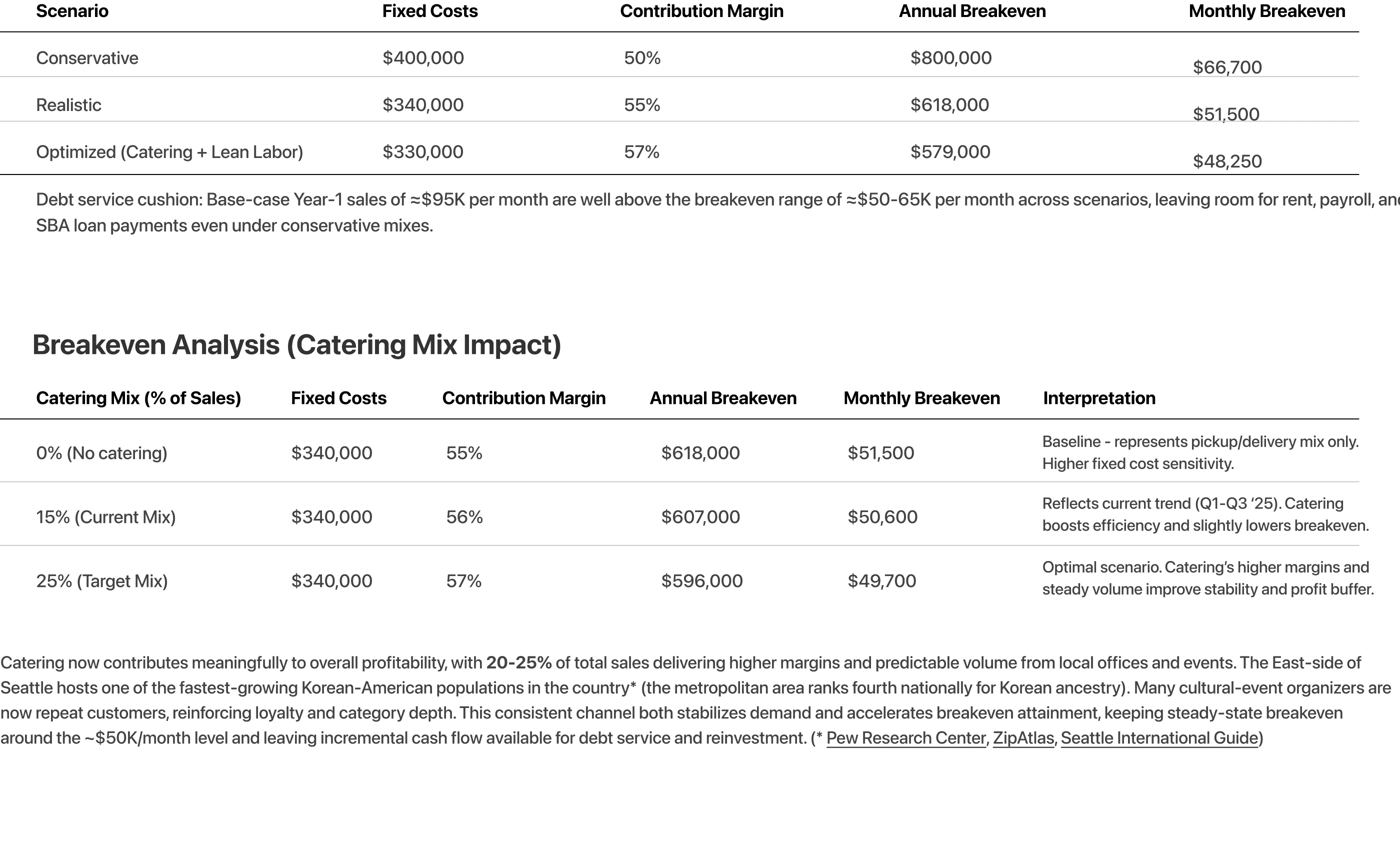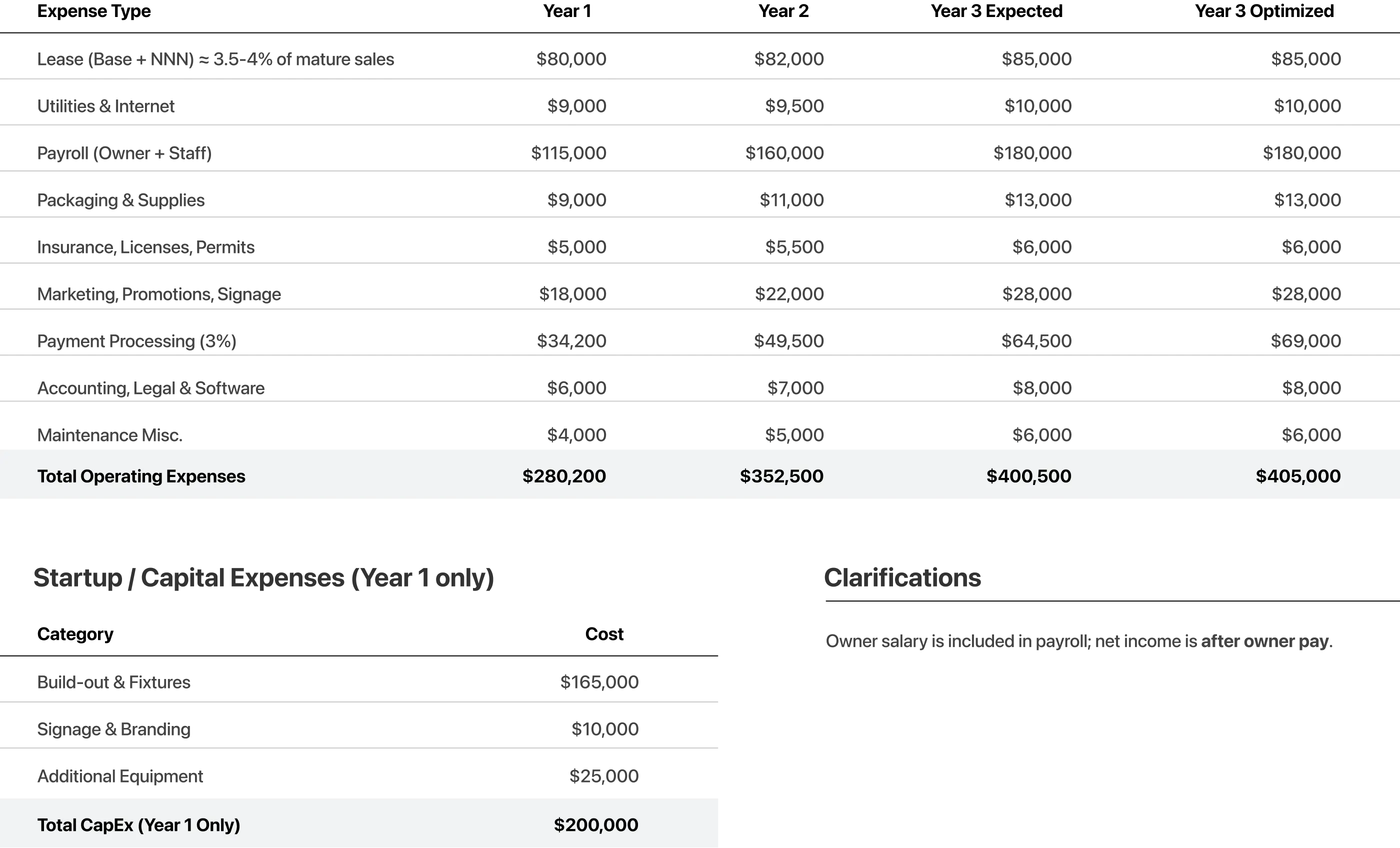 This timeline shows how one location scales the same way a product does — through sequential unlocks. We move from validated pilot demand to full retail operations, then layer in improvements like expanded hours, better order composition, higher-margin mix, and recurring catering.